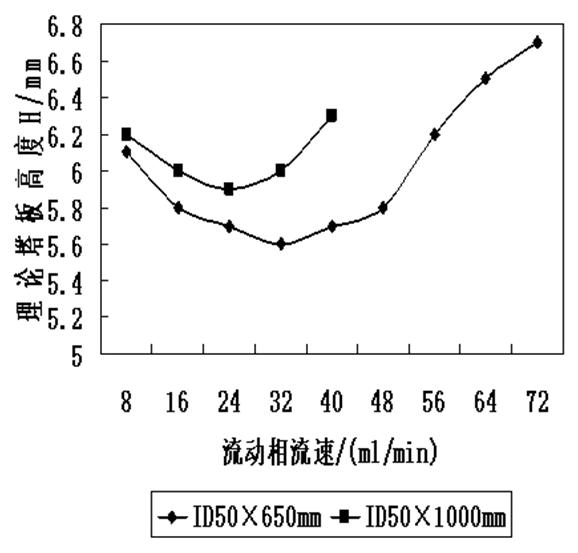 圖5不同柱長(zhǎng)下流動(dòng)相流速對(duì)柱效的影響