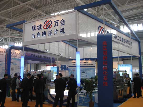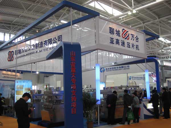 第42屆(2011年秋季)全國制藥機械博覽會于2011年10月29日至11月1日在青島國際博覽中心召開。我公司展出亞高速壓片機、旋轉式壓片機等系列樣機,新研發(fā)的40噸大單沖壓片機首次公開亮相于此次展會。此外,還展出了我司承擔的山東省自主創(chuàng)新成果轉化重大支持項目《高壓液相層析純化裝備》,此產(chǎn)品為生化制藥高純度原料藥分離裝備,是中藥現(xiàn)代化分離純化核心技術裝備。